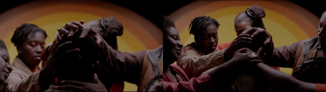 The work is heavily inspired by activists and cultural leaders. Several ‘actors’ in the film have lived the very events referenced and are involved in real-life justice work for family and community members who have died at the hands of the state. The chant “come the light, come the hope” comes from an anonymous poem I found in a political zine at the Black Cultural Archives. The “incident” in the work is a composite drawn from testimonies in real inquests into state brutality. The work of psychiatrist and political philosopher Frantz Fanon was foundational in shaping the work.